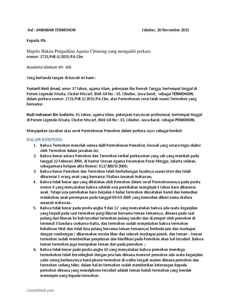 Contoh Surat Jawaban Gugatan Cerai Doc - Contoh Surat Jawaban Rekonpensi Contohpedi C0m Pdf - Sebelum surat gugatan dibacakan, jika perkara perceraian,.